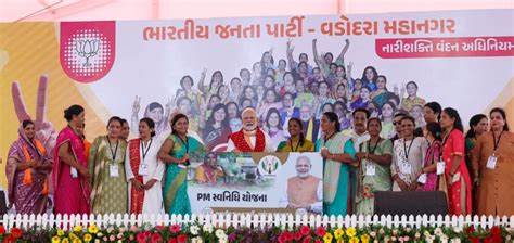 Prime Minister Narendra Modi addressed the Nari Shakti Vandan Abhinandan Karyakram in Vadodara. Speaking at the event, PM Modi said, “Ever since the day the ‘Narishakti Vandan Adhiniyam’ was passed by the Parliament, I was eager to visit Gujarat and especially Vadodara. Vadodara has taken care of me in my life, like a mother takes care of her child. Therefore, today I have come especially to meet my mothers and sisters of Vadodara.”