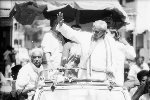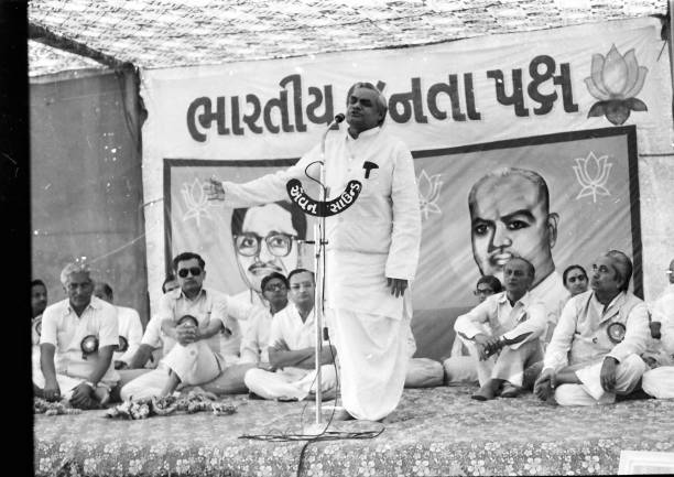 Atal Bihari Vajpayee (Former Prime Minister) at Ahmedabad in an election rally on 20th January 1981. (Photo by Shukdev Bhachech/Dipam Bhachech/Getty Images)